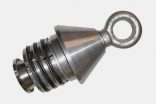 It is operated by simply inserting it into the pipe and turning the eyebolt. The turning action draws a cone into four toothed segments which are forced into the wall of the pipe. The harder the eye is pulled the harder the pipe is gripped.