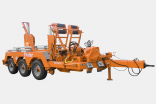 U-shaped heavy-duty construction is built for big cable drums up to a max. weight of 30 tons and a max. dia. of 4.600 mm and has a hydraulically driven “loading width extension”. The basic trailer consists of three major parts: rigid towing bar triangle and both frame side parts with the supporting cross beams to pick up the drum.The trailer is fitted with 3 axles. All of them have having independent suspension.This trailer will be coupled to the towing vehicle by straight drawbar with ring pulling eyelet